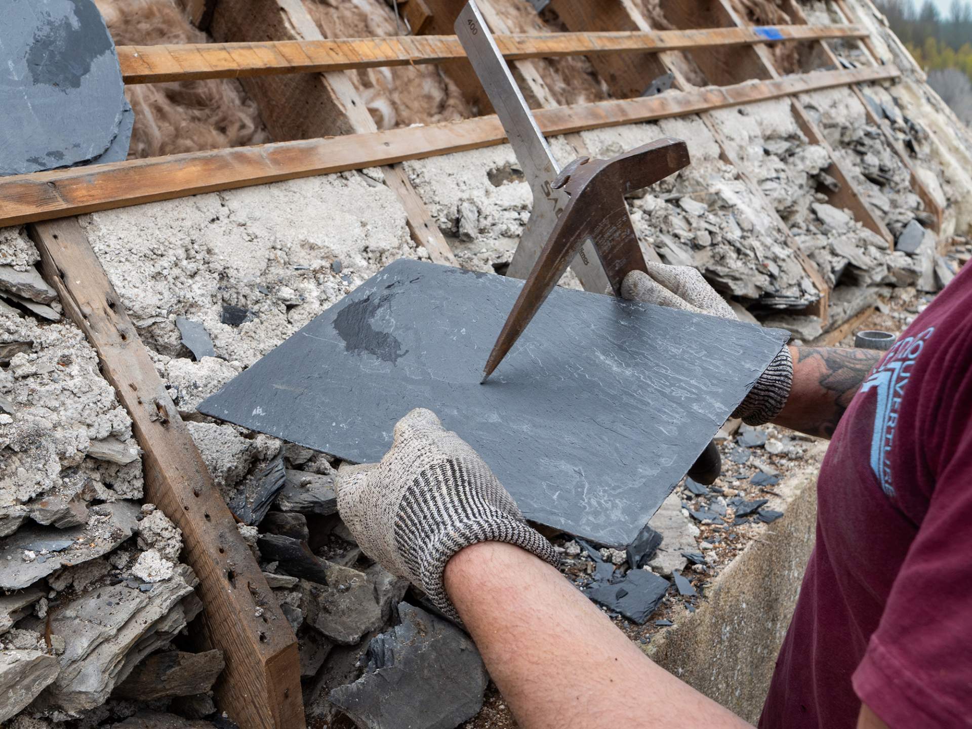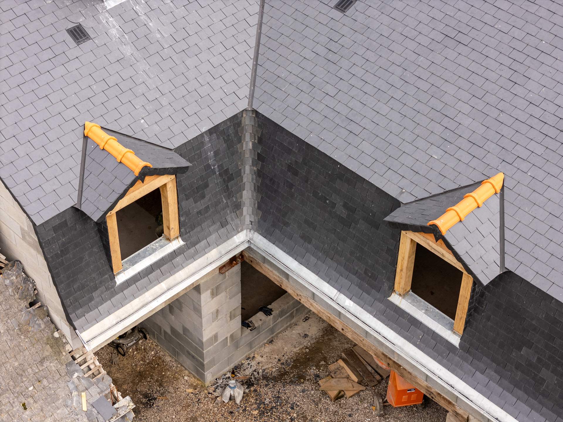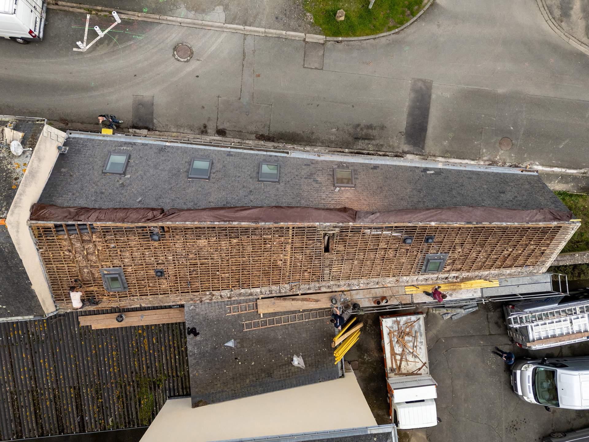 Chantier de rénovation de toitures en ardoises