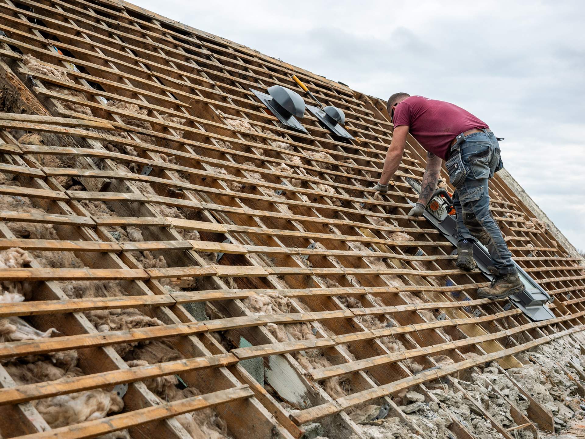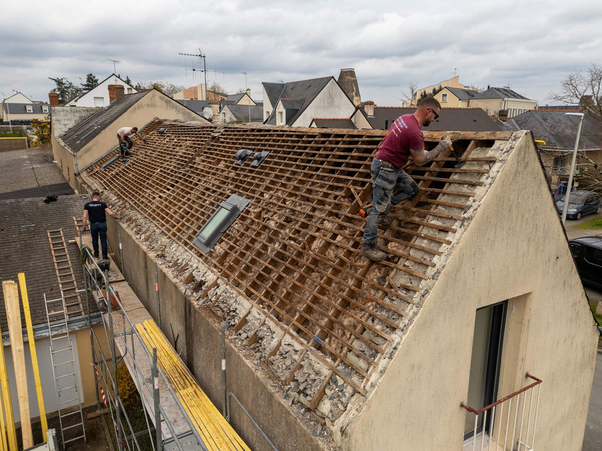 Chantier de rénovation de toitures en tuiles